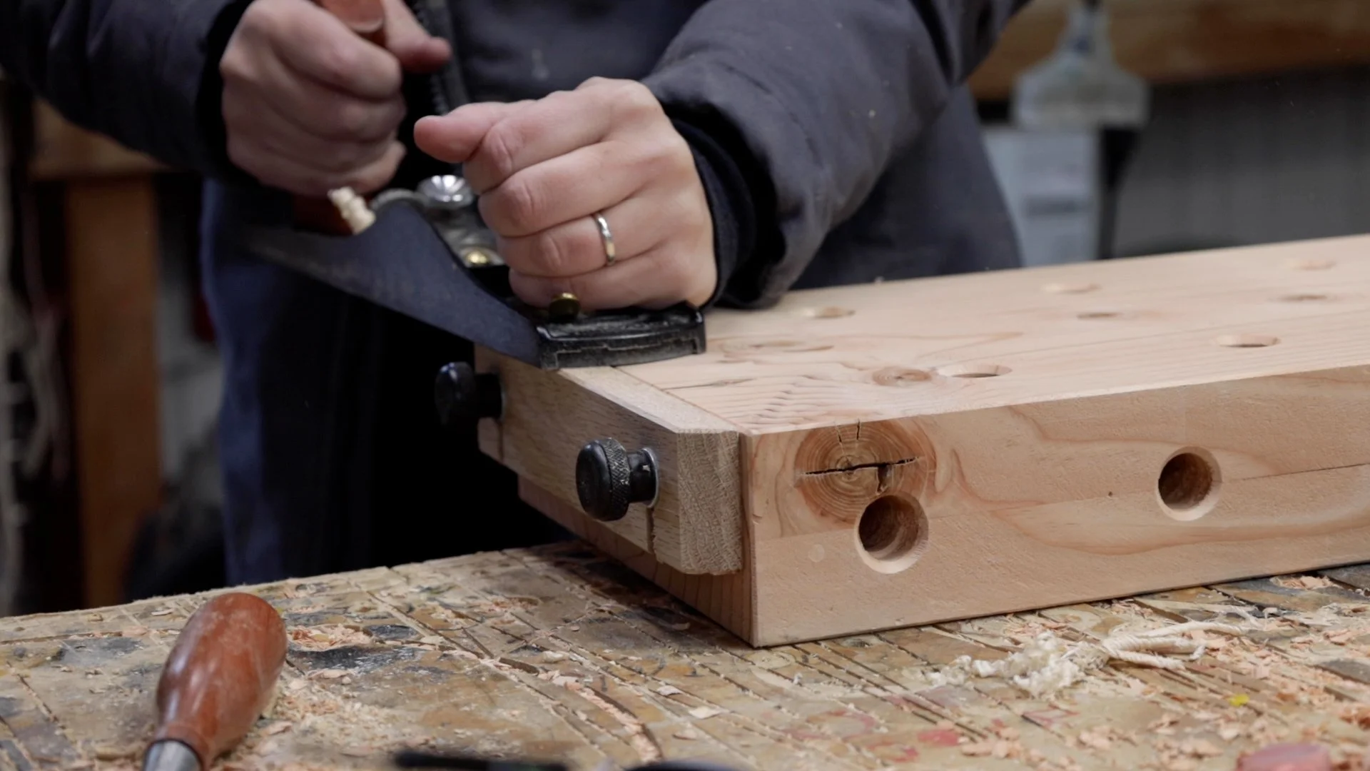 Usually you don’t need to clamp when planing like that, but if you want the piece to be more secure, you can use an In-line Dog Clamp to lock the workpiece against the plane stop.